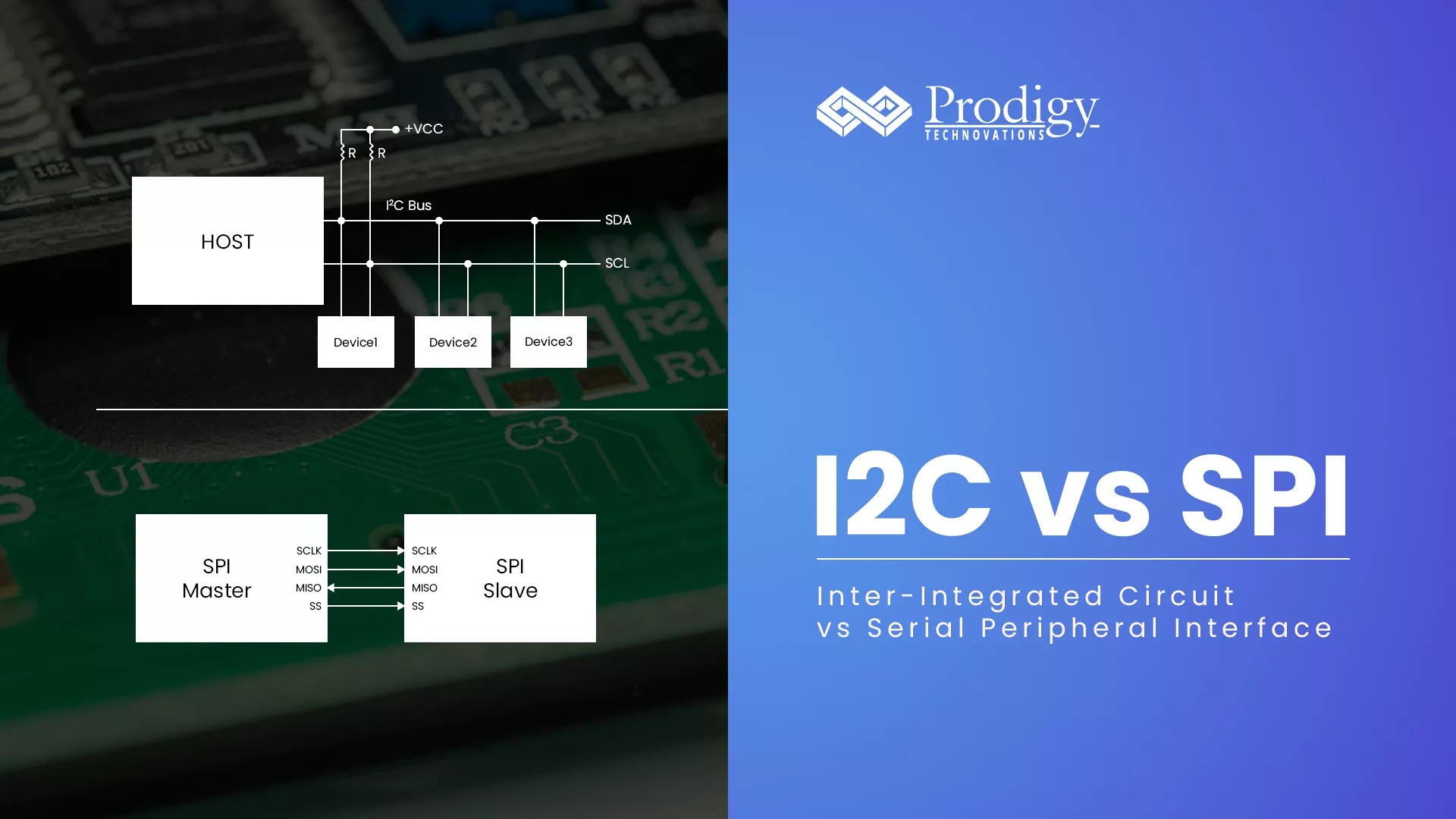 ● I2C is a two-wire protocol and SPI is a four-wire protocol.
