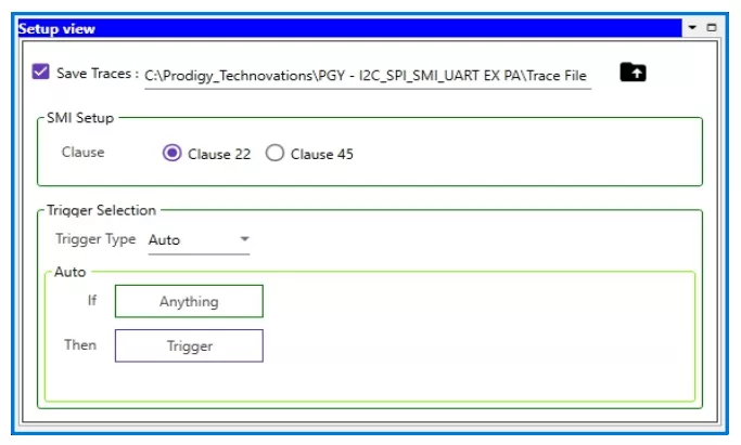 PGY-MDIO-EX-PD supports both Clause 22 and Clause 45. Users can set this in the setup view according to their preference.