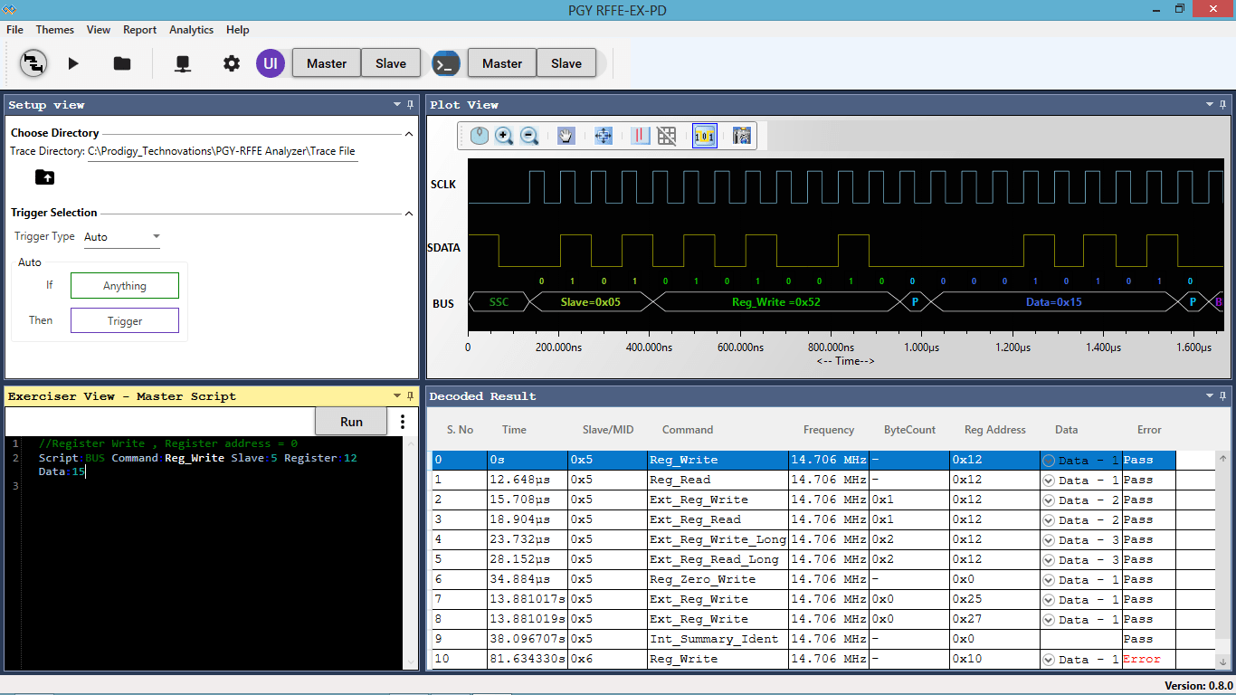RFFE Protocol Analyzer and Exerciser