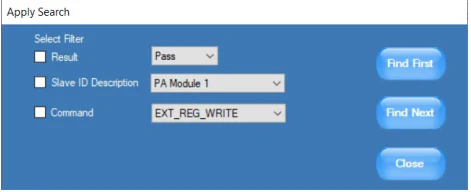 It is extremely challenging to view information of interest while there are hundreds of protocol transactions taking place between various devices. These problems compound during protocol analysis of a long record length. PGY-SPMI software solves this problem using the filter feature. By filtering information for Slave ID or specific command, or parity error type, the user can view only specific data of interest. Filters provide filtering of information using individual packet content or a combination of packet contents.