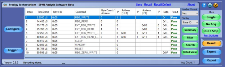 - Long-duration data decode support to capture more SPMI protocol transactions