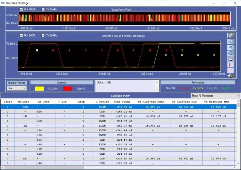 UART/RS232C Electrical Validation and Protocol Decode Software