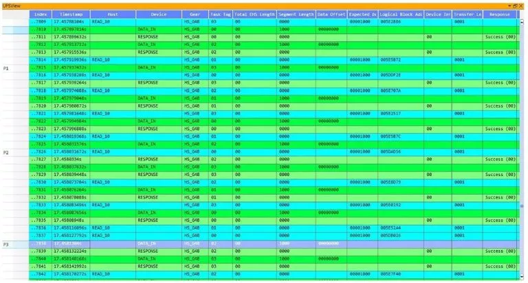 PGY-UFS3.X-PA Software can display each UFS packet parameter in a listing window. Right-click lists all the packet parameters for user selection. Users can color code the fonts or background color for easy identification of each UFS packet.