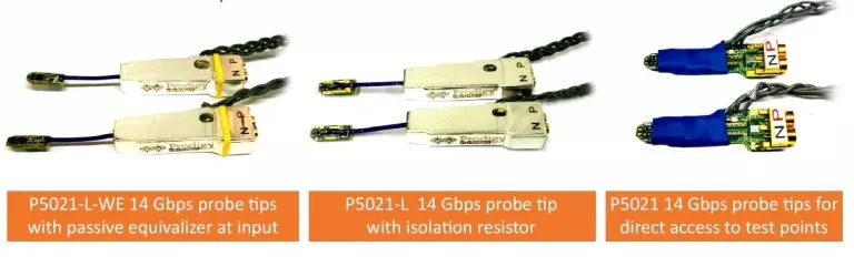 Probing the UFS signal is one of the key challenges in reliable UFS protocol decode. In most of the DUT, test points are located close to each other without enough space to solder the probe tips. Prodigy Technovations offers three types of 14 Gbps Probe tips which provide flexibility to choose the probe tips to meet the need. P5021-L and P5021-L-WE Probe tips have isolation resistors that can be changed based on the signal strength at test points. This helps in reducing reflections while accessing the test point and maintaining the signal integrity. The passive equalizer in P5021-L-WE helps in maintaining the differential impedance between the lane. If test points are easily accessible, then the P5021 probe tip can be used to probe the test points.