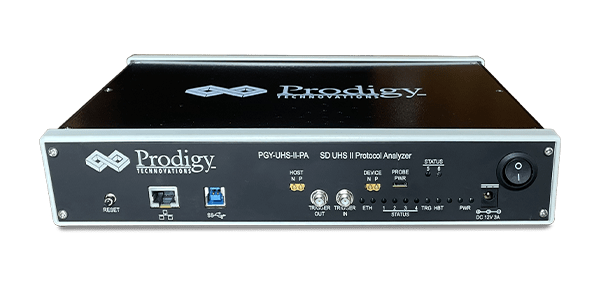 Prodigy Technovations provides UHS-II fixture /interposer. This allows users to probe UHS-II Signals to monitor the protocol between the host and device.