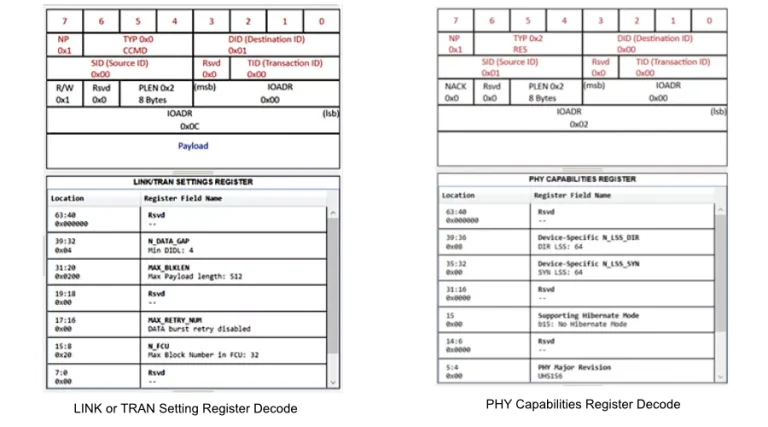 | Protocol Decode | CCMD, DCMD, MSG, DATA, Arguments, Device registers |