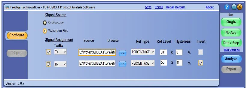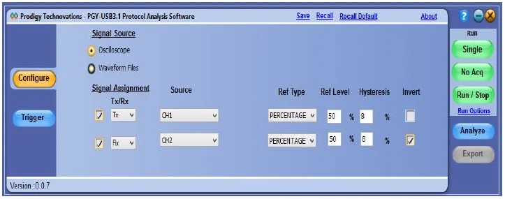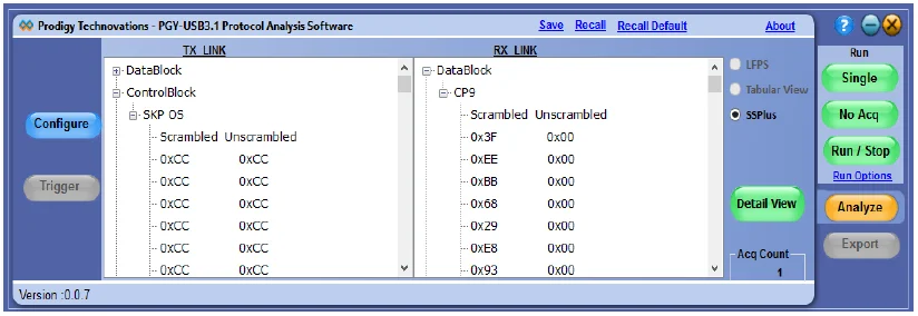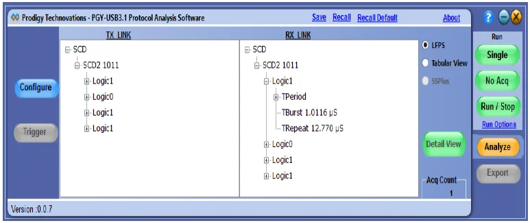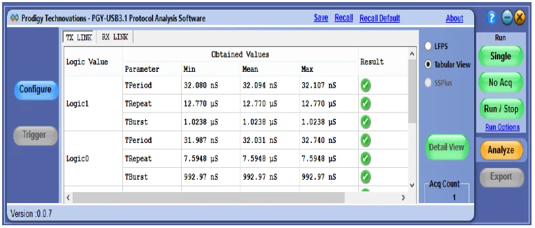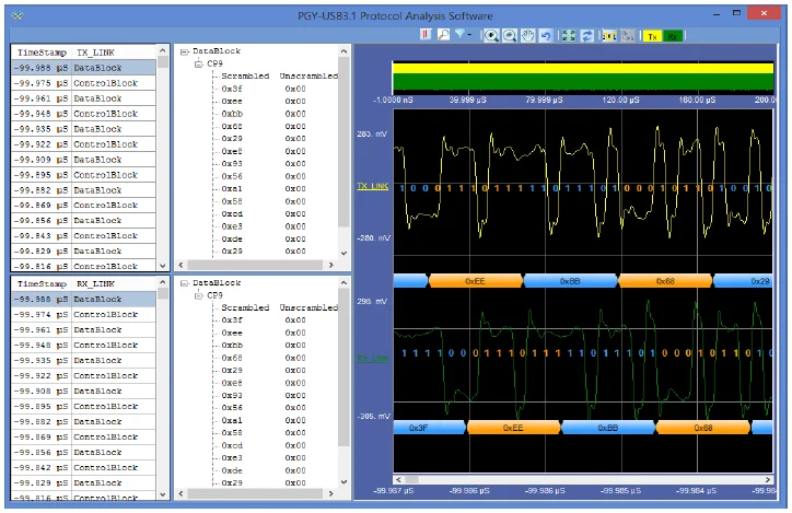 The PGY-USB3.1 software helps in analyzing both LFPS and Superspeed patterns.
